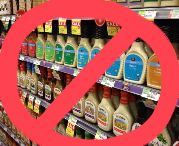 To be fair, there are artisanal and organic dressings out there made with good expeller-pressed vegetable oils like canola or sunflower. Expeller-pressed means those oils are mechanically derived instead of extracted via the use of nasty chemicals. The companies that use them usually make a point of putting it on the label, so, as with all things commercial, if it doesn’t say expeller pressed, it probably ain’t.