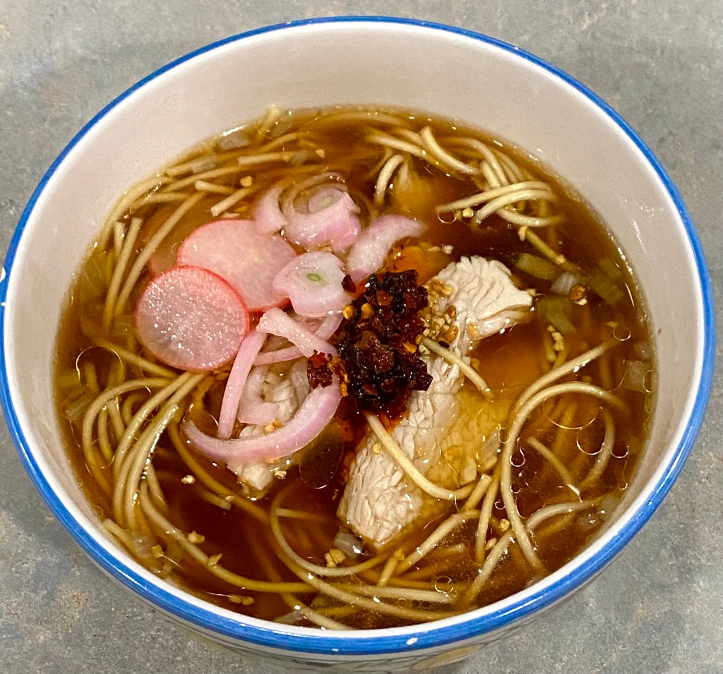 What tare is made from in any given great bowl is often a mystery – It’s each cooks special magic, and I t’s up to us to parse out what we‘re tasting and formulate our own. Fortunately, there are lots of clues – you’ll find ramens named for a key tare ingredient – Shoyu (soy), Miso (soybean paste), Shio (salt), or Tonkotsu (pork bone) to name just a few. A browser search will turn up a wealth of starting points for you, and of course you’re welcome to riff off mine, so long as you go on to make it your own.