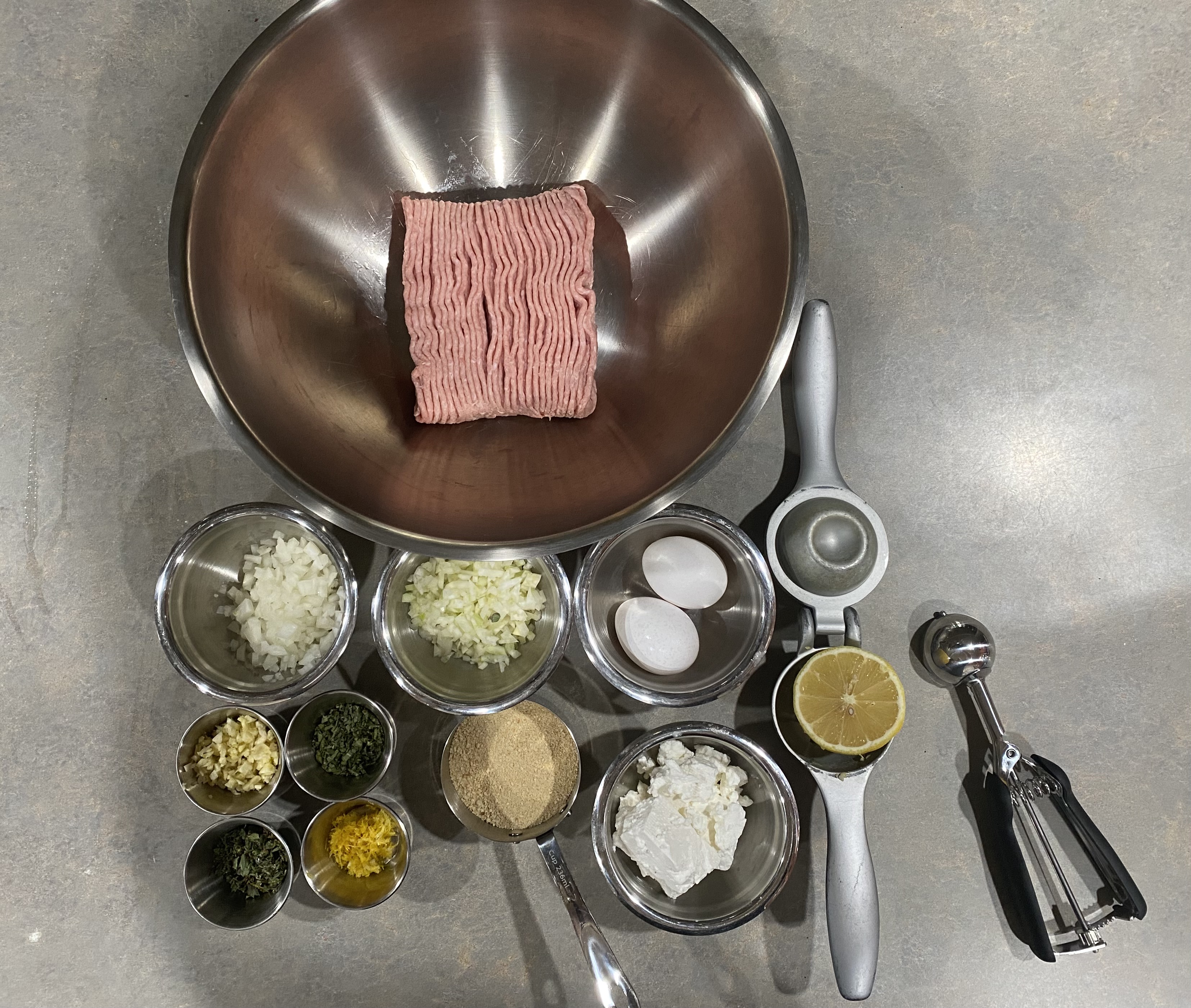 Ground Turkey isn’t gross, and done right, it’s neither dry nor tasteless. It can easily be found or ground in the 10% to 15% fat range, and as long as it’s fresh, it’ll have a great texture as well, but it does not pack a whole ton of flavor. As such, I was loosely thinking of Keftedes, the signature Greek meatball – something with some serious zing to it. What I took from that was dominant notes of garlic and lemon, with a robust herb punch. Try these in your kitchen just as I detail below, then make them yours. If you wanted to go further down the Greek theme, you could add curly leaf parsley, mint, cumin, or warm spices like cinnamon and nutmeg.