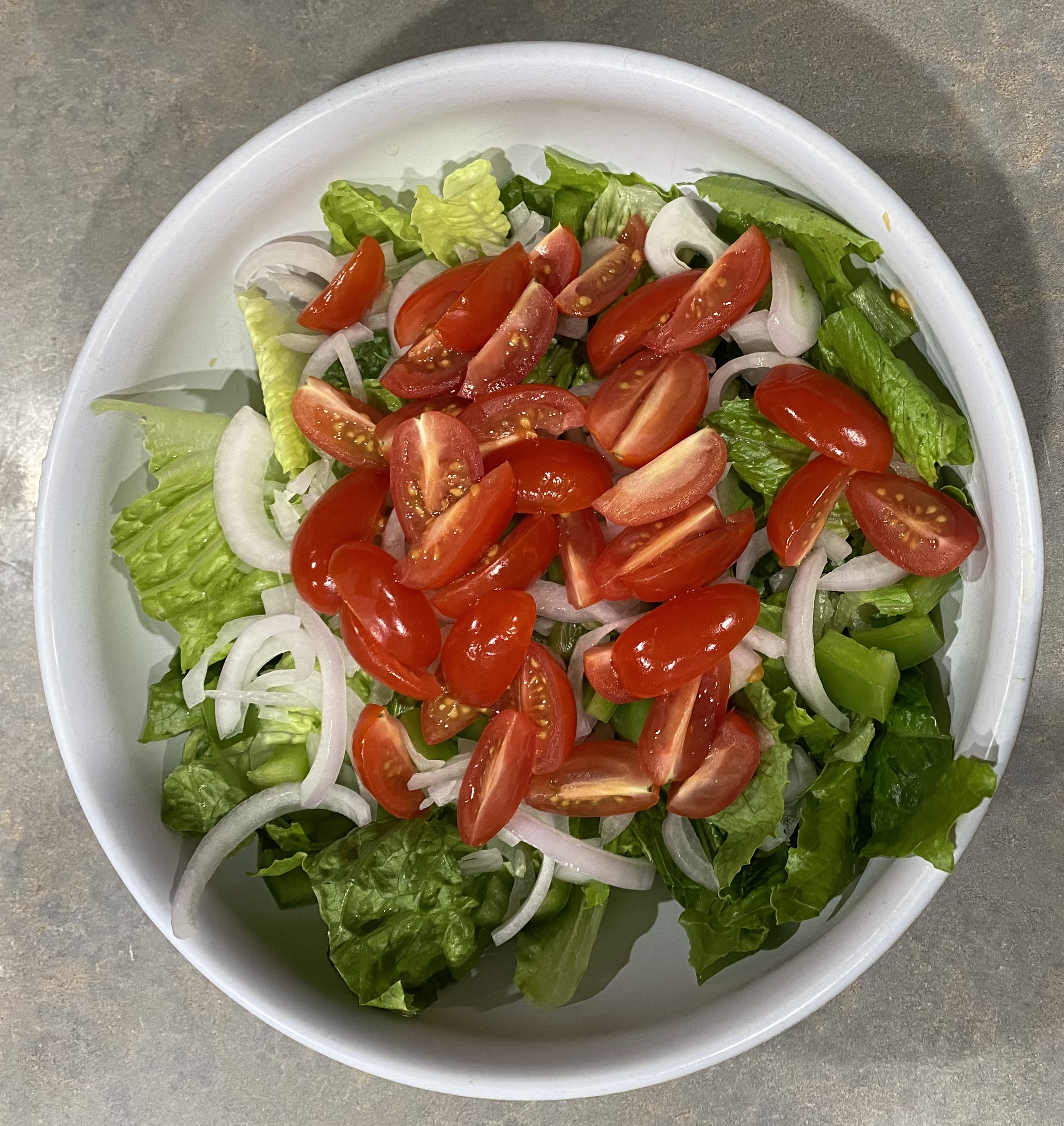 End trim, peel and slice onion roughly 1/8” thick – fine dice 1 cup and toss into a large mixing bowl.