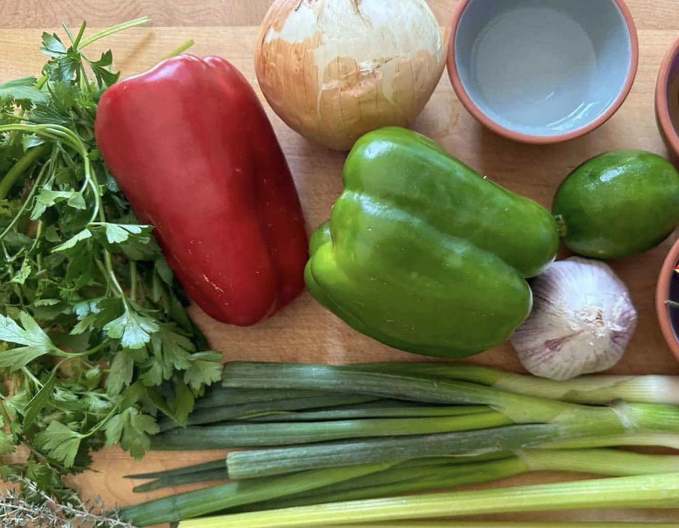 End trim, peel and slice onion roughly 1/8” thick – fine dice 1 cup and toss into a large mixing bowl.