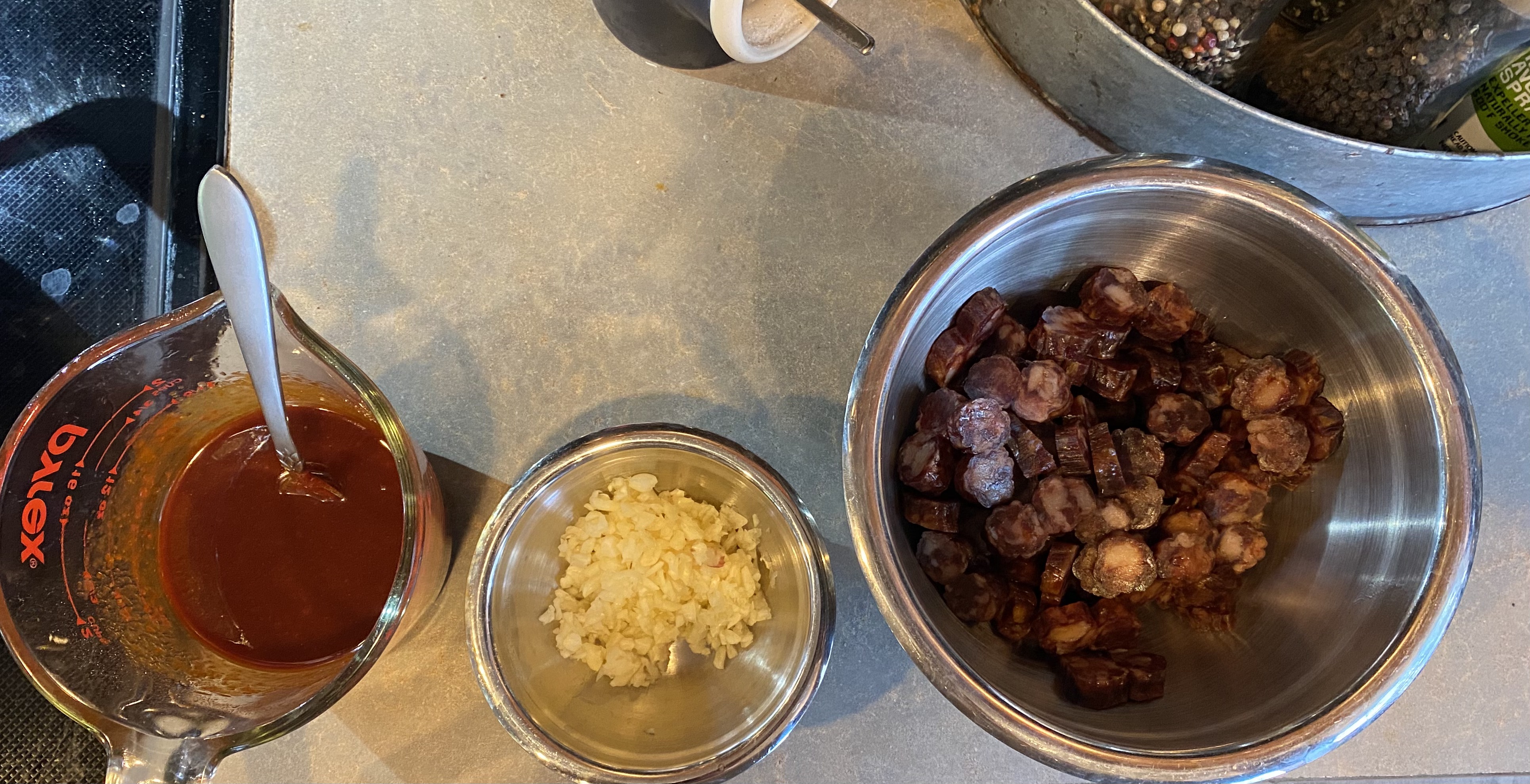 If adding sausage, slice into roughly 1/4” thick rounds and place in a bowl for service.