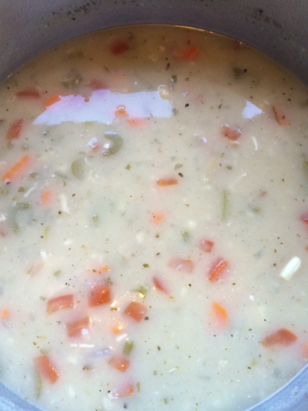 Working in thirds, gently fold the beaten egg whites into the cream and rice blend. Use the side of a spatula and take your time. The batter should look and feel quite light when fully blended.