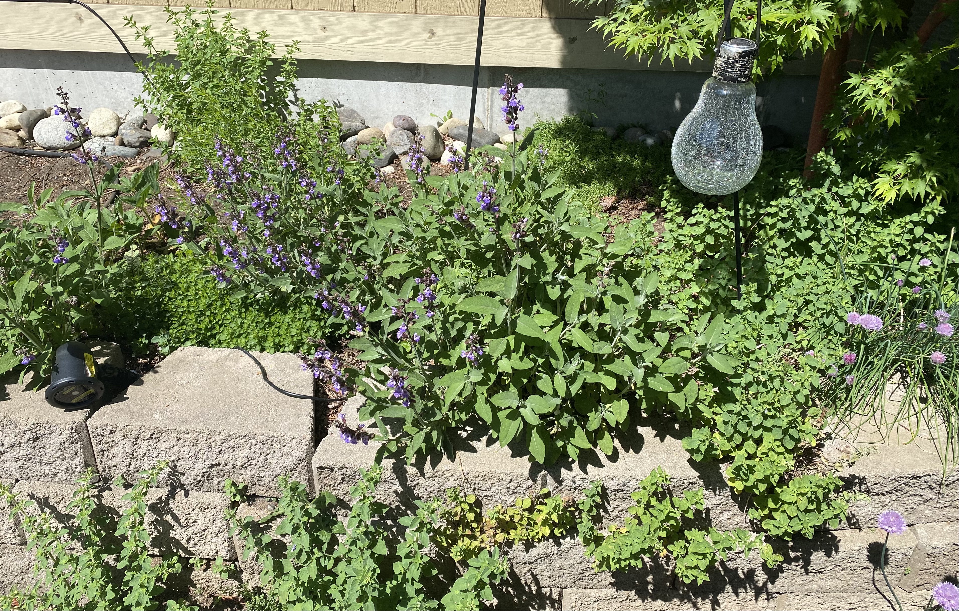 Herbs are pretty much self regulating, albeit we do keep them trimmed back to a dull roar.