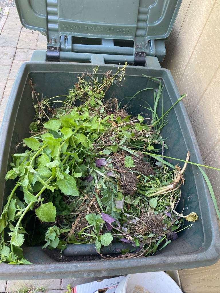 I started out front and did, ah… a little weeding. Our youngest kid recently moved out, leaving us blissful empty nesters – but that kid lions share of garden design, construction, and upkeep – so that’s now fallen to me. Weeding is very zen-like, and I love it, as you can see…