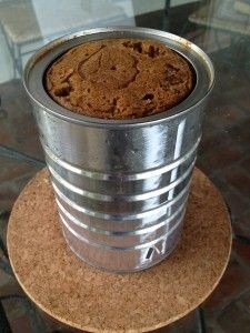 Divide the batter evenly between the prepared cans. Cover the top of each can with a double thickness of aluminum foil and tie securely with kitchen string. Place the cans in your deep pan and slide that into the preheated oven.